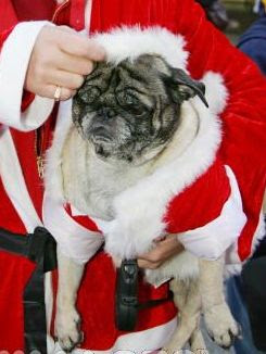I don't know why, but people like to dress up their dogs. I guess it makes them feel better about not having a person that loves them. Anyway, this time of year people dress up their puppies like Santa Claus. Here are 17 such doggies: