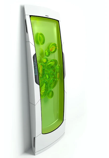 Four times smaller than a conventional refrigerator, the Bio Robot cools biopolymer gel through luminescence. Rather than shelves, the non sticky, odourless gel morphs around products to create a separate pod that suspends items for easy access. Without doors, draws and a motor 90% of the appliance is solely given over to its intended purpose. At the same time, all food, drink and cooled products are readily available, odours are contained, and items are kept individually at their optimal temperature by bio robots. The fridge is adaptable – it can be hung vertically, horizontally, and even on the ceiling. Different sizes and dimensions allow it to perfectly fit the accordant dwelling.